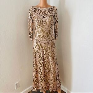 TADASHI SHOJI Sequin Embroidered Gold Gown Size 2