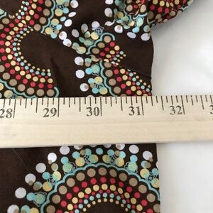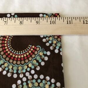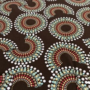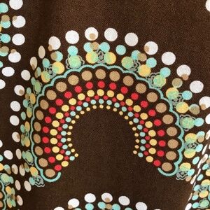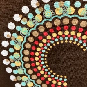Colors - Brown background with Blue, Green, Tan, Orange/Red and White