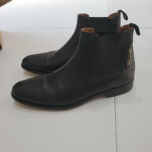 TAFT Boots Mens Size EU 42 Black Chelsea Leather Croc Embossed Heel Pull On