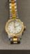 Elegant watch featuring a gold and silver with mother-of-pearl and shimmering diamonds. Steel bracelet 18k gold plated.