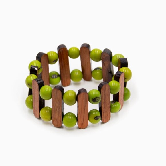 TAGUA Sandy Sustainable Stretch Bracelet Green and Wood
