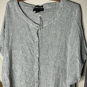 TAHARI 100% Linen Gray Gauzy Button Down Top Size Medium