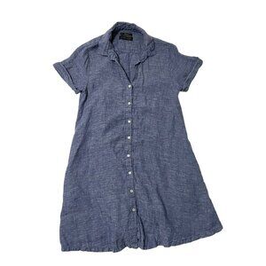 TAHARI 100% Linen Shirt Dress Button Down Pockets Coastal Blue size XS