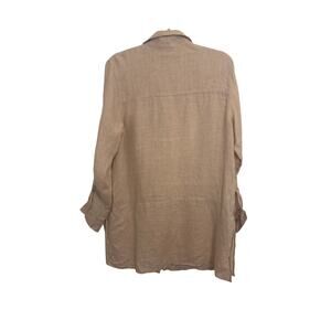 TAHARI 100% Linen Tunic Top Blouse Medium Neutral Sustainable Tab Sleeve Capsule