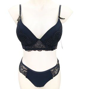 TAHARI 36B/M BLUE PUSH UP BRA SET