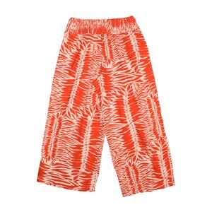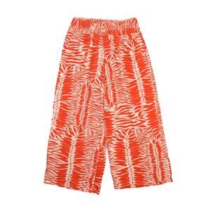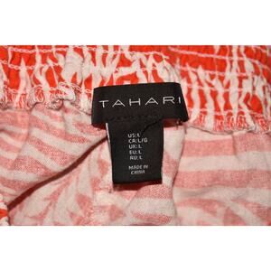 TAHARI $99 Red White Tropical Print Wide Leg Linen Pant Smocked Waist Large