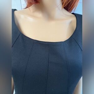 Classic Black TAHARI Arthur S Levine slip dress with cap sleeves and panels that hang beautifully at the waist. Perfect dress for work. Alone or with a blazer or cardigan. Animal print lining inside top of dress. Stylish, professional and comfortable.