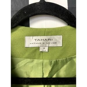 TAHARI ARTHUR S LEVINE Collarless Zip Up Crepe Blazer Matcha Green Size 14