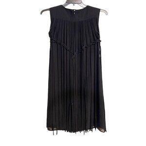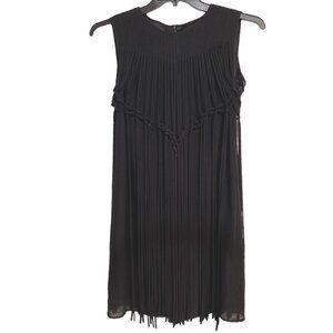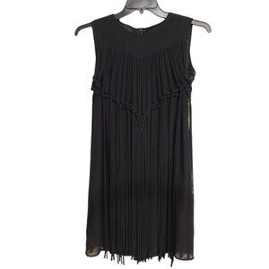 TAHARI ARTHUR S. LEVINE Long Fringe Mini Flapper Dress Size 4 Black Sleeveless