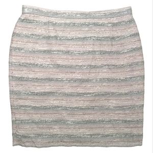 TAHARI ARTHUR S. LEVINE Tweed Skirt. Hem is let out on bottom of skirt. May be easily stitched back up if you want it 1-2" shorter. Very forgiving fabric with seams. Pale Pink, white and grey. Stunning Skirt!