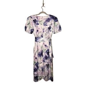 TAHARI ASL $128 Floral Print Puff Sleeve Faux Wrap Tie Waist Midi Dress Size 6