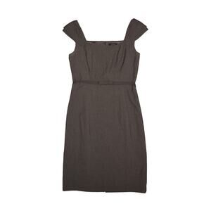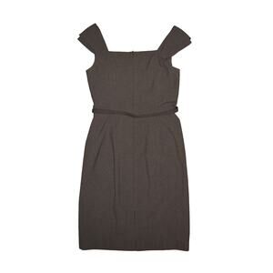 TAHARI ASL $129 Square Neck Knee Length Belted Sheath Dress Gray Size 8