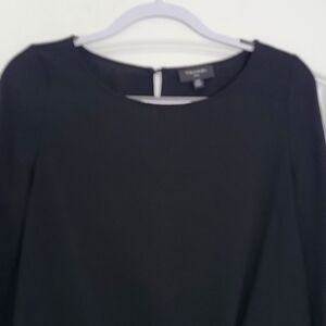 TAHARI ASL BLACK LONG SLEEVE BLOUSE TIE WAIST KEYHOLE BACK XSMALL
