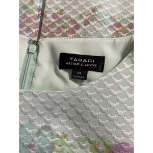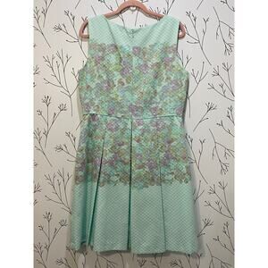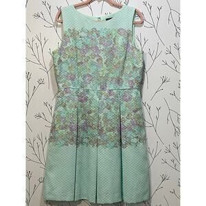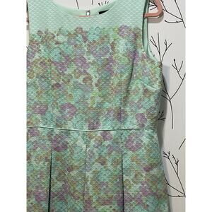 TAHARI ASL Mint Green Pastel Watercolor Pleated Fit & Flare Dress Sz 14 Pockets