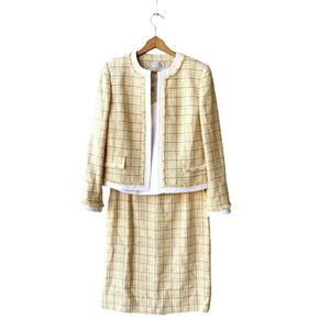 TAHARI ASL Tweed Skirt Suits Women’s 8 Yellow 3-piece Open Front Career Office