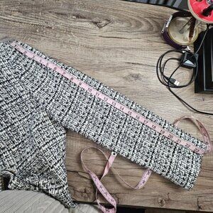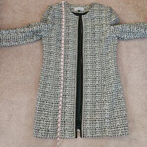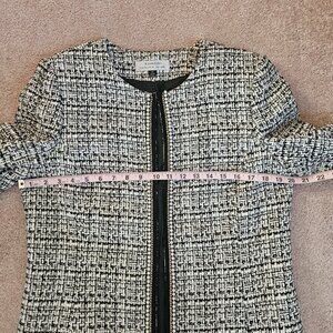 TAHARI Arthur Levine Coat/Jacket White & Black w/Pearls & Metallic Fibers Sz 12