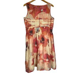 TAHARI Arthur S Levine Floral Watercolor Print Tencel Sleeveless Dress US Sz 12