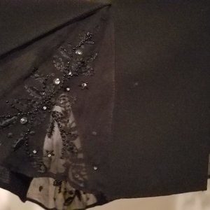 In the straight state - strict, slightly flared (also lined) It is worth taking a step - the bottom of the skirt opens in the most unusual magical way: in the folds - the finest magnificent lace, and the lace is strewn with small sequins and beads! Just a great suit.