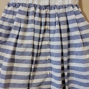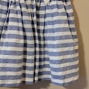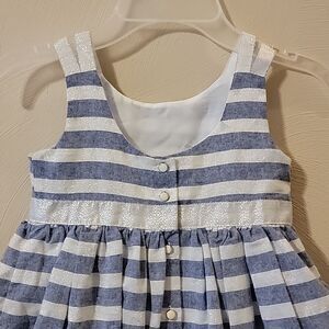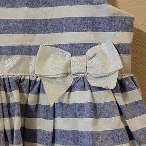 TAHARI BABY BLUE AND WHITE STRIPED SLEEVELESS DRESS WITH BOW, SIZE 4