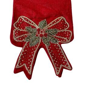 TAHARI Beaded Bow Table Runner 16x90 Christmas Holiday Red Holly Berry