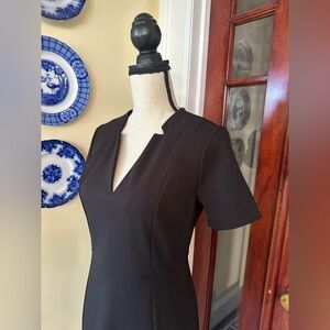 TAHARI | Black Knee-Length Dress with Notched V-Neck, Size 4