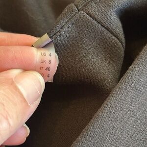Nice preowned condition with no flaws to note. Polyester/Rayon/Elastane blend. Zips down back. Perfect work event or cocktail dress.