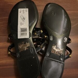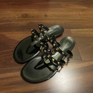 TAHARI Black Lila Thong Sandals with Metal Studs size US 6