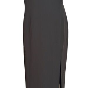 TAHARI Black Midi Dress Strappy Back Slit Cocktail Party Wedding Size 12 Sexy