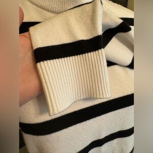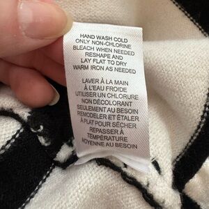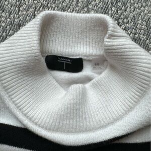 TAHARI Black & White Pullover Stripe Sweater w/ Thick Stitch Decal - Large