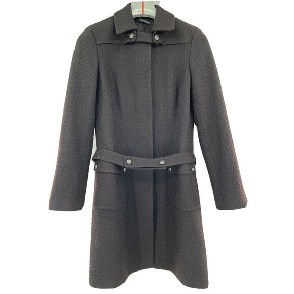 TAHARI Black Wool Blend Belted Midi Jacket Size M