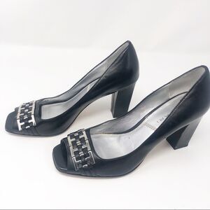 TAHARI | Black Open Toe Heels w/ Chain Accent 6.5
