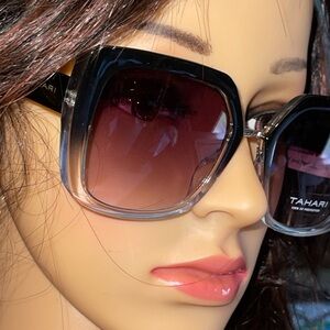 TAHARI Bridge Geometric Sunglasses In Black 100%UV Protection