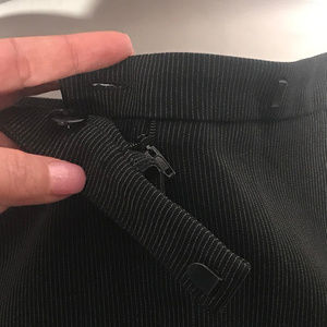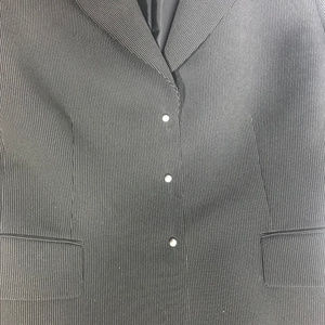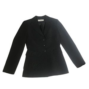 Tahari Business Pant Suit, Black Pinned Stripe, quality made, beautiful details, 3 front buttons, very flattering.