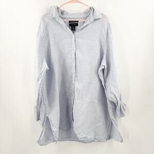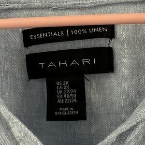 TAHARI Button Down Shirt Size 2X 100% Linen Essentials Light Blue Chambray Plus
