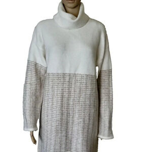 TAHARI Cream Multi Long Sleeve Turtleneck long sleeve Dress size L