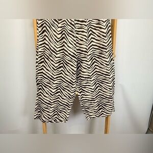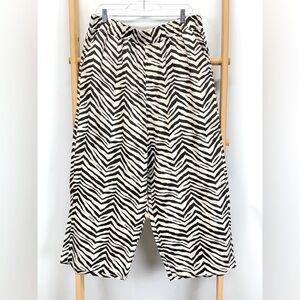Cream and brown zebra print 100% Linen wide leg crop pants from TAHARI, size XL.