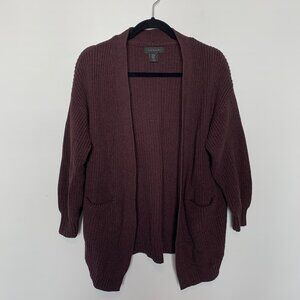TAHARI DARK BROWN OVERSIZED 100% COTTON CARDIGAN SWEATER SIZE X-SMALL