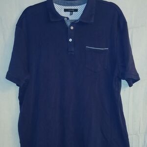 TAHARI Deep Navy Polo Shirt with Classic Collar and Textured Fabric