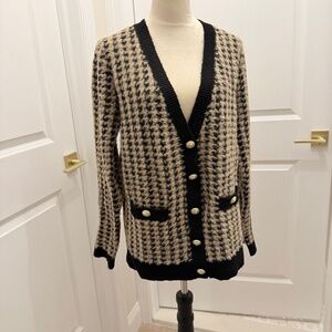 TAHARI EYELASH BROWN HOUNDSTOOTH CARDIGAN WITH GOLD BUTTONS MEDIUM