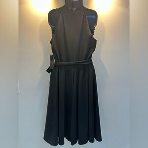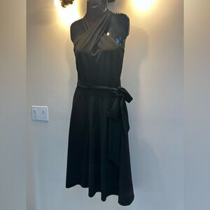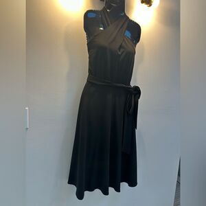 TAHARI Elegant Black Crisscross Halter Dress 8