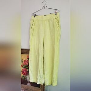 TAHARI Essentials Neon Yellow 100% Linen Stretch Waist Pants Size Large