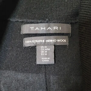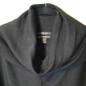 TAHARI 100% Extrafine Merino wool black dropped shoulder long sleeve drapey cowl neck tunic sweater top, Women's size M.