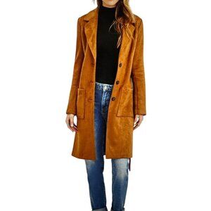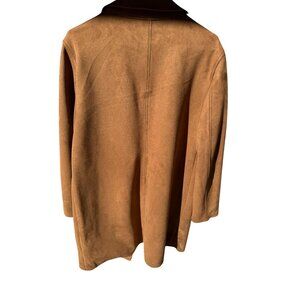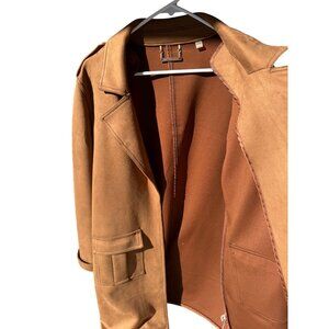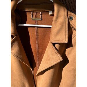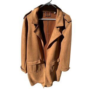 TAHARI Faux Leather Suede Open Lapel Wrap Jacket Large Long Trench Coat
