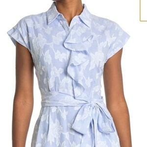 TAHARI Floral Burnout Deersucker Ruffle Dress