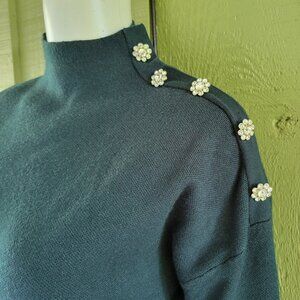 TAHARI Forest Green Sweater Knit Rhinestone Buttons Medium M