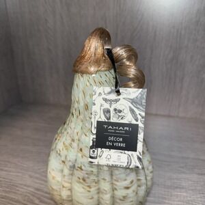 TAHARI Hand Blown Art Glass Pumpkin Blue And Green Designer Fall Home Decor New