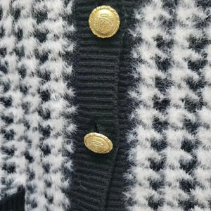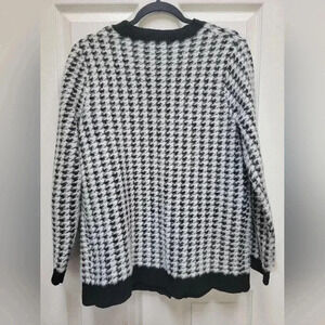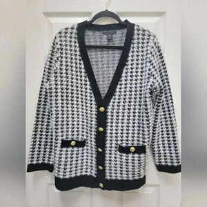 TAHARI Houndstooth Eyelash V Neck Button Down Sweater Size Large