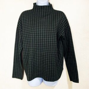 TAHARI Houndstooth Mock Neck Sweater Soft Deep Green Black Holiday Winter Work Large. Excellent preowned condition.