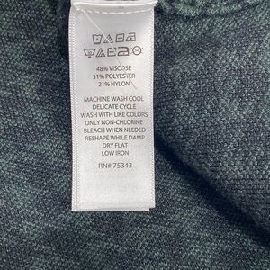 TAHARI Houndstooth Mock Neck Sweater Soft Deep Green Black Holiday Winter Work L