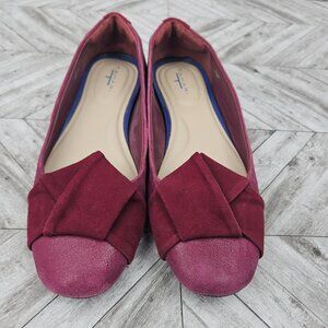 TAHARI LEATHER FLATS Womens 7 M Slip On Classic Feminine Round Toe Bow Raspberry